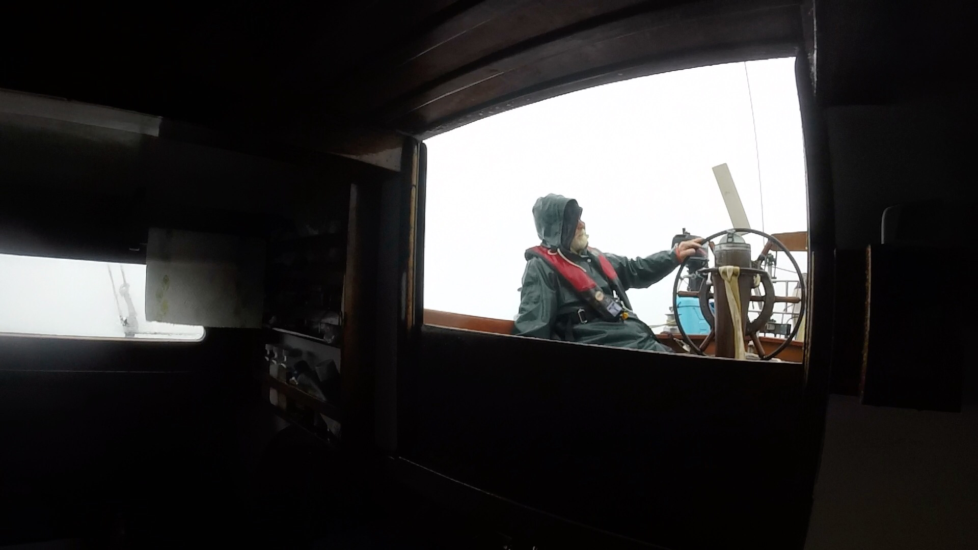 Those two days we slept little, with two people awake at a time. Two hours steering, two hours sympathizing (and making tea and checking that the helmsman was still there after particularly pushy waves.) We were exhausted, and Peter especially who couldn’t sleep at all with the rolling boat. I started to take his snoring as a good sign.