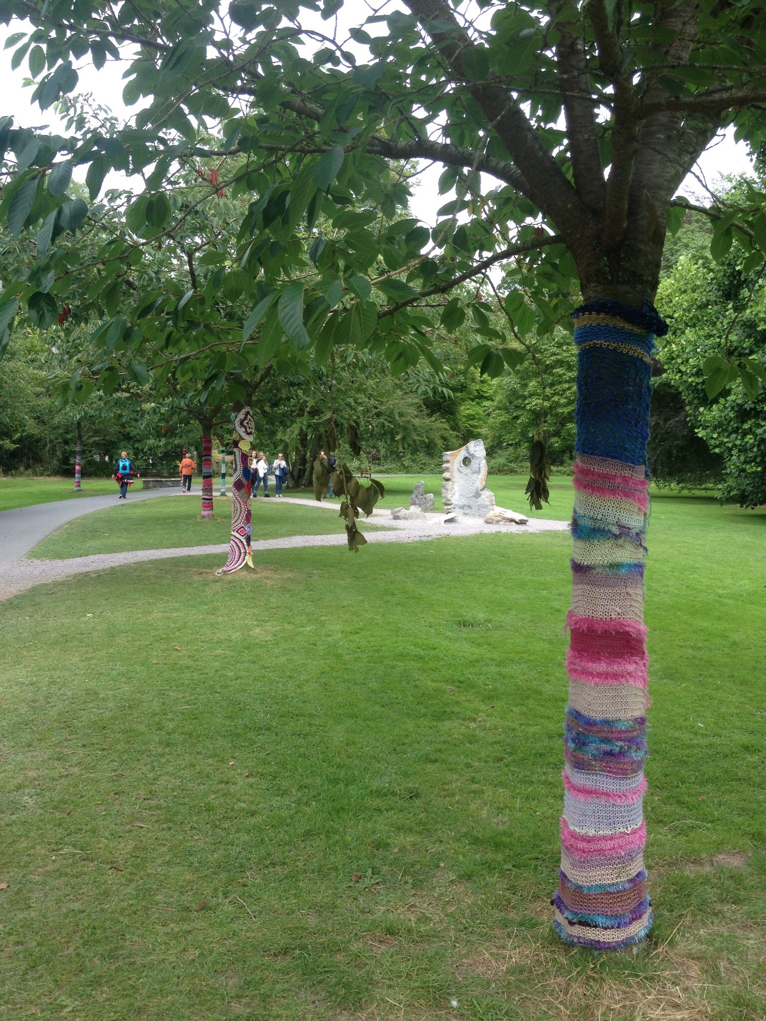 We bought the 20 Euro tickets, regrettably foregoing the tour of the Blarney Mansion, and walked among throngs of visitors through beautiful gardens towards the castle. By taking advantage of a 10 foot stone wall, the builders got an instant leg up on height. Add in the dramatic visual effect of walls sloped slightly inward and badda boom, you have yourself an impressively daunting fortress. A line of gawkers stretched out the gate, and a sign stated that to kiss the Blarney Stone, one would have to stand for an hour, inching up to the roof of the castle. Dana was not interested. I almost bailed on account of intense period cramps, but Dad seemed intrigued and it was hard to take that away from him.