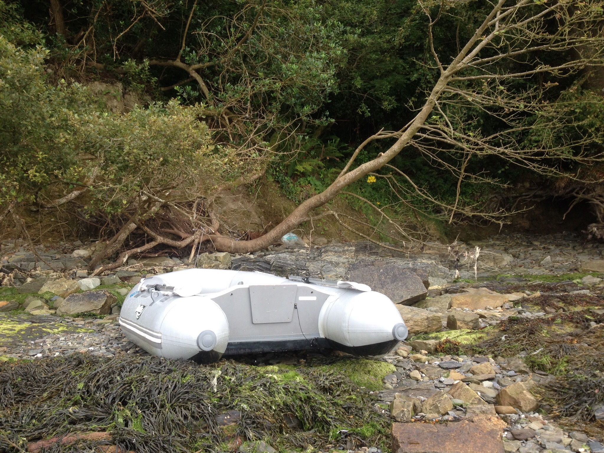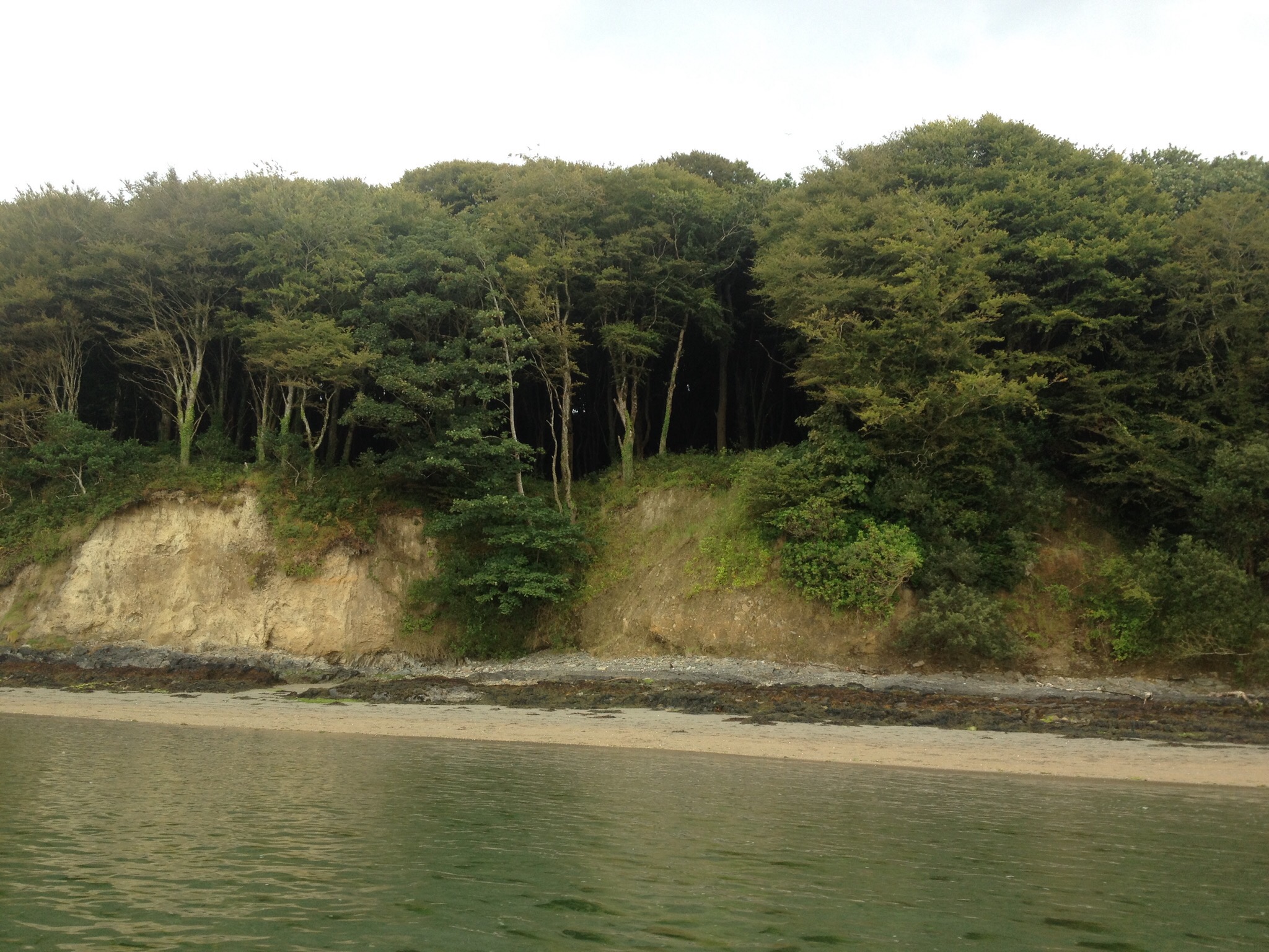 Pulling into Courtmacsherry Harbor, I noticed a trail running around the point up towards a rolling green cliff side. We glided up the channel, and the trail dove into an enchanting forest, dense and impenetrable, kinky cedar foliage and scrawny crooked limbs fading into blackness. The rocky shoreline was exposed, the tide so low that a fisherman stood up to his waste, just a hundred feet to port. Our keel soon found that same shallow bottom, muddy and soft, and we poked around for a while, seeking a consistently deep channel inside the buoy markers. But after being pulled to a stop on rise after rise of mud, we finally surrendered and puttered to the side of the channel, throwing out two anchors.