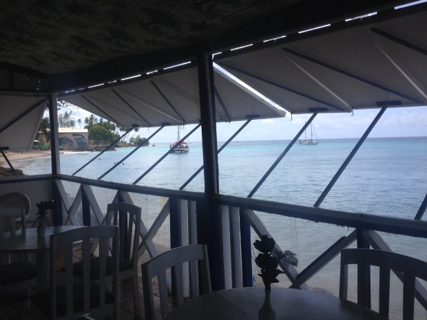 The lemonade is a brownish color and taste more like brown sugar than lemons, sweet and iced. It feels perfect for this first hot day around town. I am relieved it comes in a glass rather than the typical plastic trash of beach bars. Chris (one of the owners of the boat) orders chicken and lamb and rice, a local bottled beer. “You want vegetables?” the matron tests. Chris says no and she clucks her teeth, raises an eyebrow, purses her lips and slightly shakes her head, the classic West Indian gesture of “you should know better.” She rings him up. $32 Barbados, $16 US. This is not a cheap island.